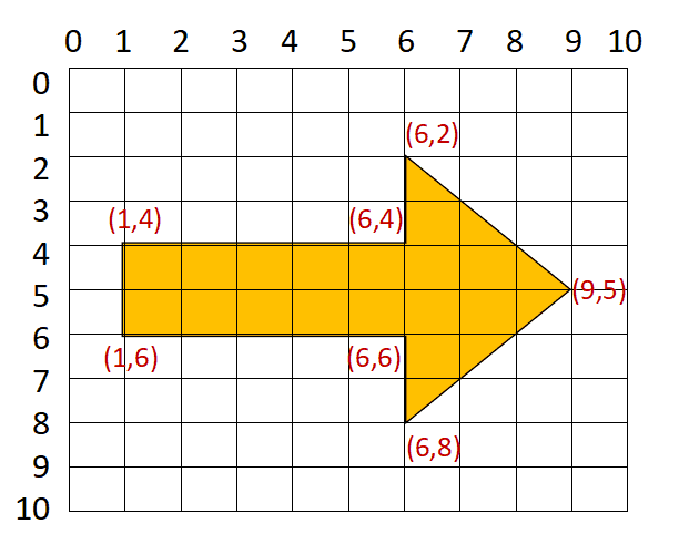 ビューポートの左上を原点として,x 軸は右へ,y軸は下へのびる座標系です.