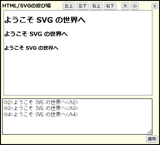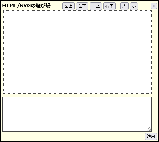 <svg width=400px height=240px style="background: #ffa;"> </svg>これを入力域に入れて,「適用」ボタンを押すと