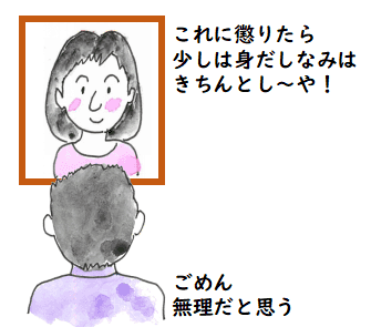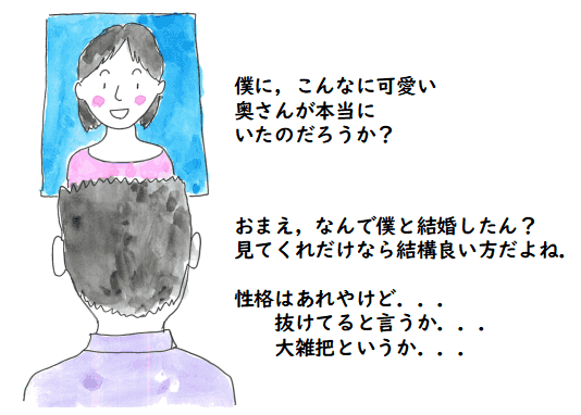 まあ,普通の人程度に,身だしなみに気を払わない私が悪いので, 亡くなってまで,亭主に忠告をしてくれている優しい朋子さんだったと 思うことにします.でも,一人になってしまったんで,なかなか色々なことに 気を遣うのは難しく,朋子さんの忠告通りにすることは難しいかなという気がしています.