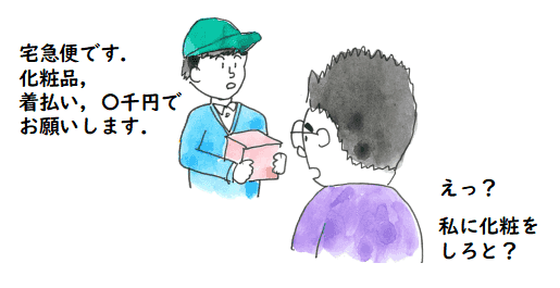朋子さんが亡くなった次の日に化粧品の着払いが一つ,その次の日に玄米の 配達品が一つありました.