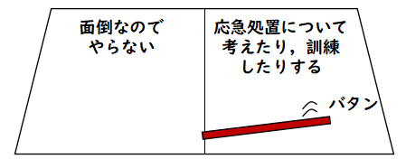 実は,事が終わった後でも,私はどうすればよかったのか分かりません.きっと,応急処置みたいなことが重要だという方向に意識付けすることが重要なんだと思います.例えば,