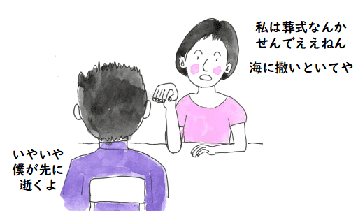 4月14日,朋子さんが 17:35 に病院で亡くなられてからは,すぐ病院の霊安室に運ばれ, 病院で紹介していただいた葬儀屋さんがそこを訪れ,今後のことを話し合いました. その中で,すぐ決断しないといけないものとして,