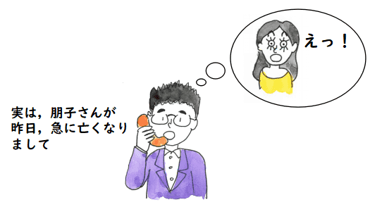 息子にはお葬式の段取りを色々手伝ってもらい,感謝します.また, 母親が亡くなって悲しいと思いますが,朋子さんも息子に悲しませようとは 思っていないと思いますので,しっかり生きてください.