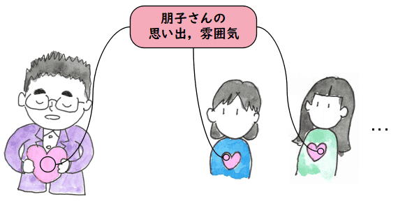 幼稚園,小学校のときの息子の同級生のお母さま方,その家族の方々, 朋子のお顔を見てお別れを言ってくれたり,通夜に来てくれてお別れを 言ってくれたり,涙を流していただいたり,香典を頂いたりした方々,その他,悲しんでいただいた方々, ありがとうございます.
