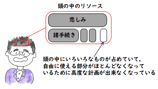 頭の中にたくさんのでしょうし,般若心経で言えばゴミが溜まって きて,自由に使える計算リソースが不足 して 思考力が低下している状態