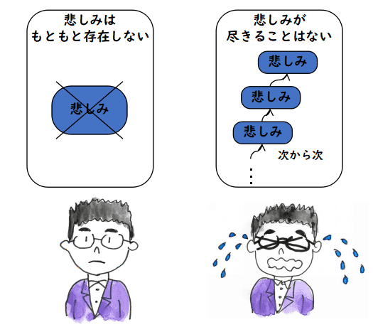 以前書いたゴータミーのお話,子供を亡くした母親を釈迦が救う話 もこんな感じで,ゴータミーは自分の子供の死を受け入れています.