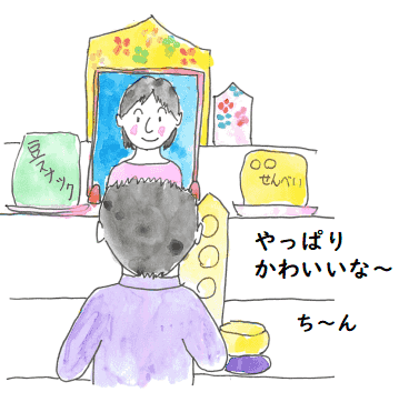 お葬式をすぐする場合と,こんな感じで長めにとってする場合があると思いますが, 私個人としては結果的には長めで良かったと思いました.その間,ずっと彼女の顔を見て いられましたから.通夜のために葬儀屋さんに連れていく前日の夜には
