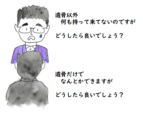「では,葬儀屋さんへ」と回答したのですが,そのとき,息子がこちらに 向かっていて,まだしばらく着かないので,葬儀屋さんからの「息子さんが 簡単には会えなくなりますよ」との確認で,