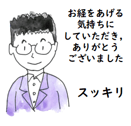 お葬式に向けて,親身になり相談にのっていただいた葬儀屋さんと藤沢のお坊様, ありがとうございます.お二人の助言が無ければ,後に面倒な手続きをしなければ ならなかったであろうことをうまく進めることができました.