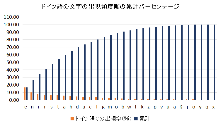 e n r t i s h a l g u c d m b o f k p z w v ä ü ö ß y j x qテキスト内での出現頻度順