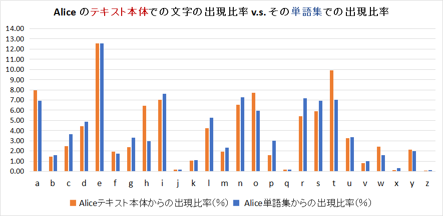 テキスト本体の文字の出現比率 v.s. 単語集の文字の出現比率は同じかという問題と言えよう.