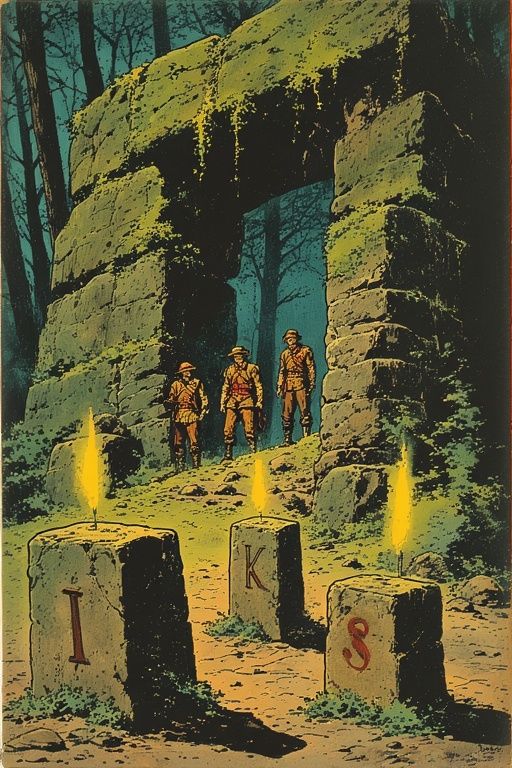 情景: 深く神秘的な森。苔むした古代遺跡の前に、3人の冒険者が立っている。彼らの前には、それぞれ異なる輝きを放つ3つの小さな石碑がある。Iの形、Kの形、Sの形だ。![]()